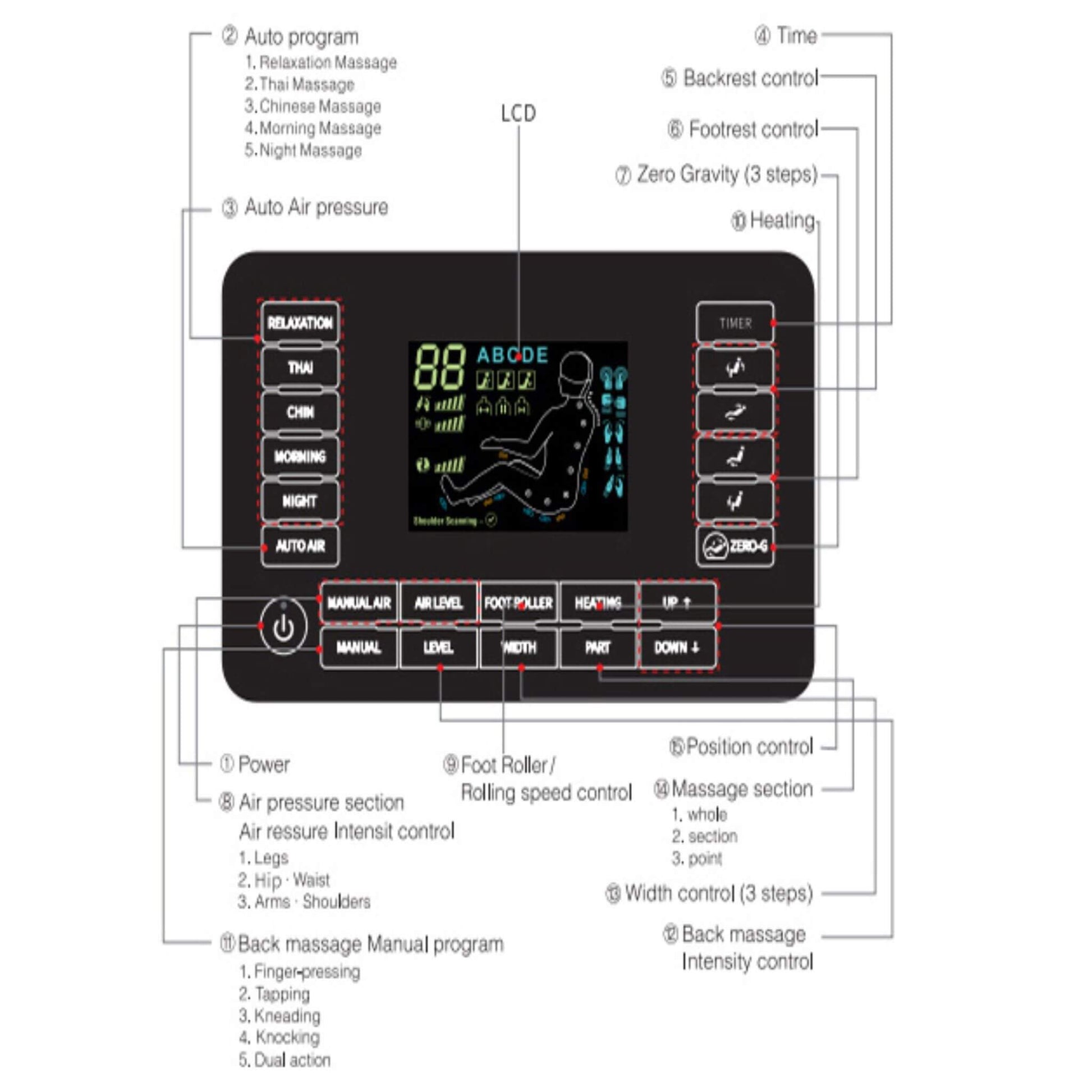 - Tailor your relaxation with a variety of options, including five pre-programmed modes such as Thai for a stretching focus or Night for a calming wind-down. For a more personalized touch, explore manual options like kneading, tapping, or a combination to suit your specific needs.